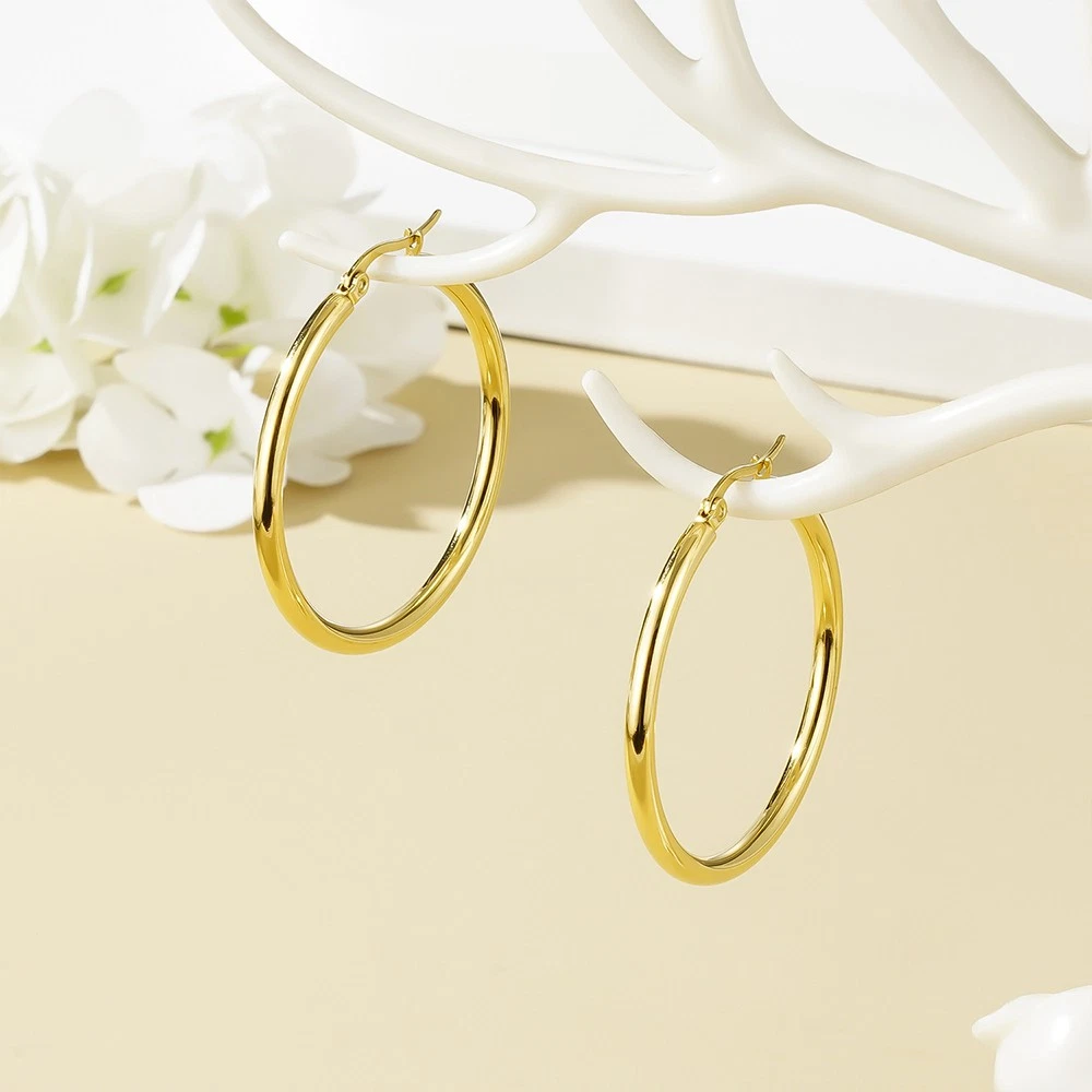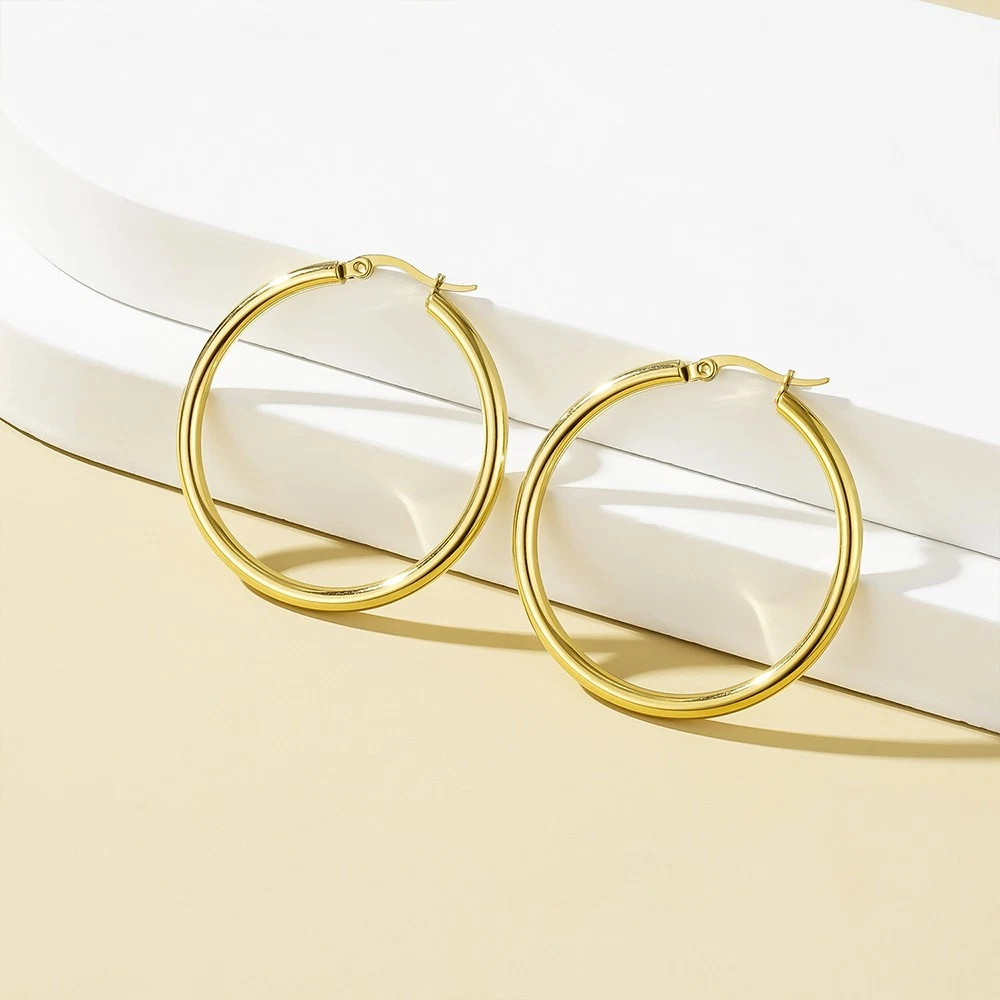 14K Real Solid Yellow Gold Round Creole Hoop Earrings